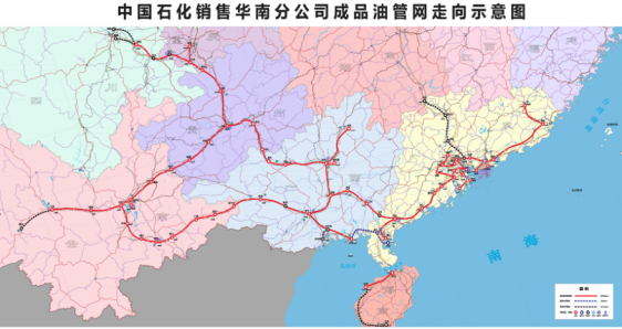 华南成品油管网由西南管网、珠三角管网组成,途经山高谷深的云贵高原和人口稠密、水网交错的珠三角地区,是目前国内最长、管径最大、运行压力最高、运行负荷最大、操作要求最高、地形最复杂、海拔落差最大的成品油管网,也是中国石化首条通过中控一次全线投油成功的长输管道。