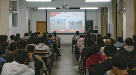 随后,武装部陈榕平老师作动员讲话,陈老师从当前国家安全形势讲起,告诉我们岁月静好的背后,需要祖国强大的国防力量,需要更多热血有志青年献身国防,希望同学们认真考虑,踊跃报名,积极入伍,在部队中锤炼成长成才,报效祖国。