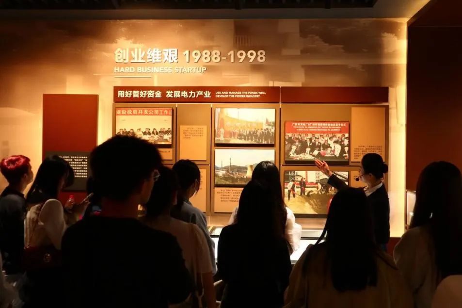 参观队伍来到广西投资集团的发展历史馆,讲解员分别从国企成长、业务发展、改革创新、团结奋斗、逐梦未来以及党建领航等六个方面介绍了集团的情况。