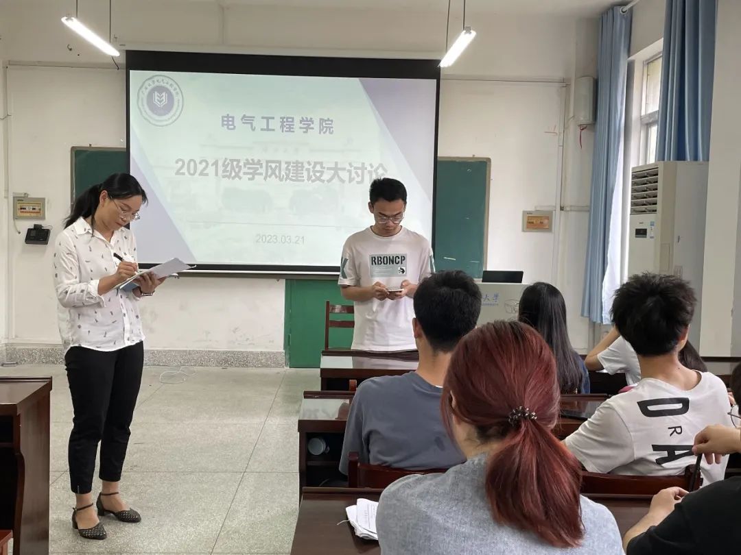 为贯彻落实《电气工程学院“深化教育教学改革提高人才培养质量”大讨论方案》重要内容及精神,构建以学生为中心的高质量学风建设体系,3月21日下午,2021级学风建设大讨论在学院207室举行,《电路理论》《模拟电子技术》课程负责人李畸勇老师、梁冰红老师以及2021级全体班长、团支书、学习委员、纪检委员共35人参与本次大讨论活动。活动由学院团委副书记、2021级年级辅导员蒋冬连老师主持。