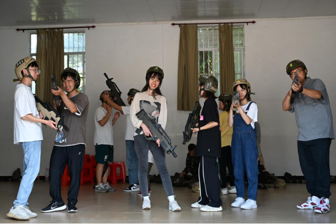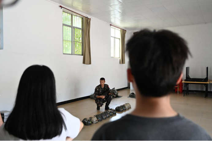 在教官们的带领下,大家来到了模拟情景战场,同学们头戴钢盔,手握钢枪,兵分两路在训练基地场地展开激烈对战,汗水夹杂着尘土,信念支撑着体力,每一次的射击与隐蔽都让人感受到了特殊环境下才能激发出来的勇气、信念和谋略。情景战场尚且如此,真实战场的艰苦更不轻松。俯瞰山与城之景,红瓦绿树参差掩映,当代青年应倍加珍惜这当下没有硝烟的幸福生活。