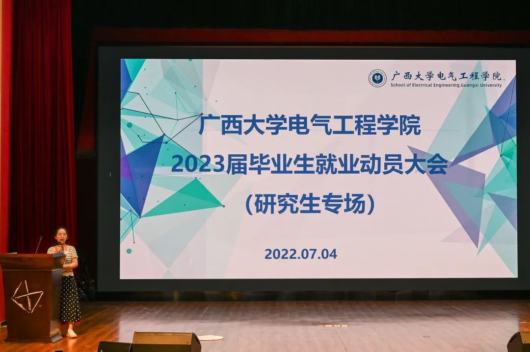 为贯彻落实学校就业工作要求,分析就业形势,促进学院毕业生积极就业,提高就业质量,7月4日下午,我院在大学生活动中心召开2023届毕业生就业动员大会(研究生专场)。学院党委副书记雷圆媛、副院长刘辉、团委副书记蒋冬连、研究生教学秘书韦一萍以及150余名毕业生参加动员大会。会议由辅导员李娟主持。