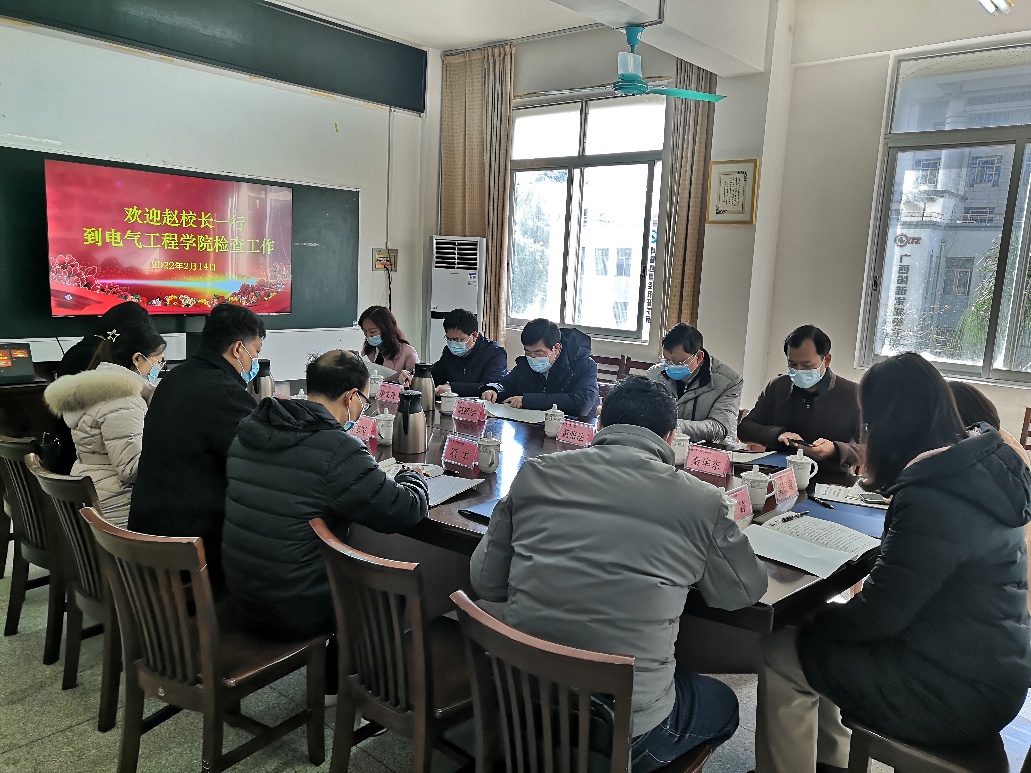 2月14日上午,赵跃宇校长带领检查组到我院检查新学期开学工作。学院党委书记梁志坚就学院疫情防控工作落实、师生报到及开学准备工作、本科教育教学、研究生教育教学以及“十四五”规划发展落实等情况进行汇报。在听取汇报后,检查组成员就本部门的相关工作提出了意见和建议,赵校长肯定了学院的开学准备工作,并对教学条件保障、人才引进、学生培养等学院发展的关键问题进行指示。