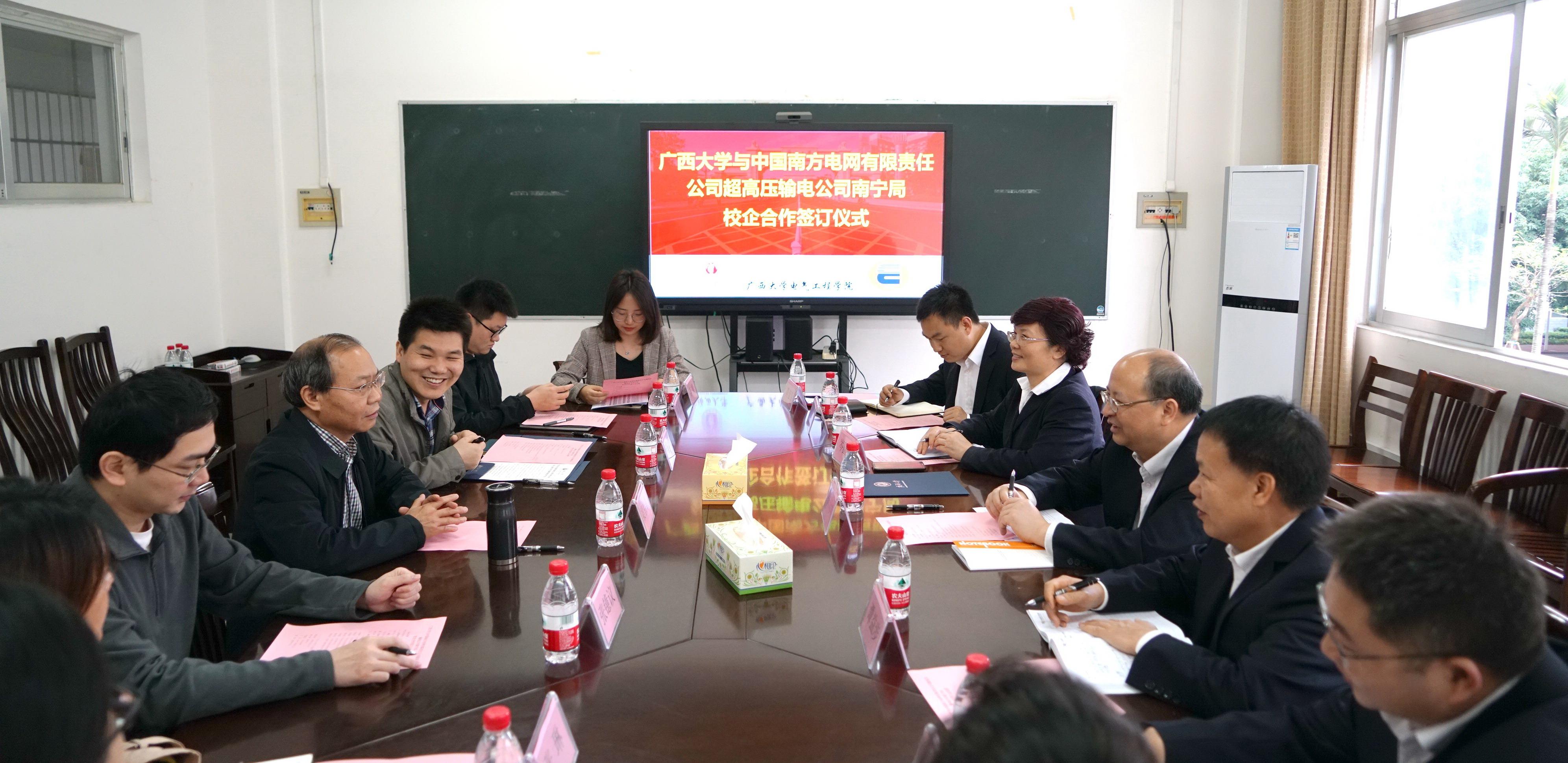 4月9日,南方电网超高压输电公司南宁局平果实训部领导一行7人到我院开展校企合作交流,并签订了校企合作协议。学院党委书记梁京章以及部分教师出席座谈会。