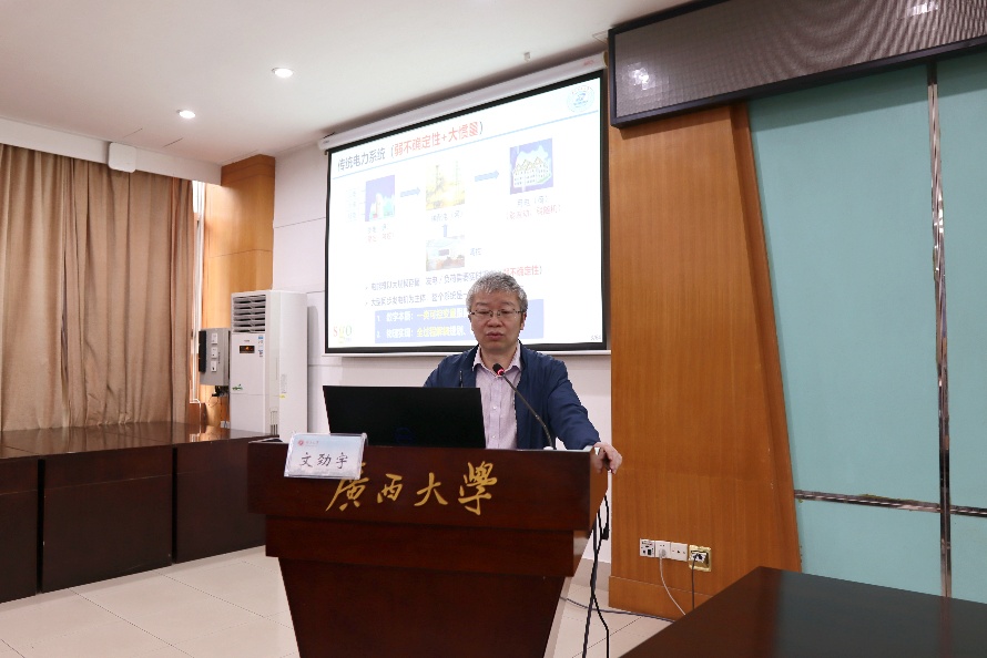 27日上午,文劲宇院长在君武馆第二会议室举办广西大学君武大讲坛,作题为“电力系统发展方向的思考与探索—电力系统储能、主动直流电网与计算能源经济学”的学术报告。报告会现场座无虚席,气氛热烈,到场的师生都表示受益匪浅。