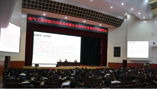 11月6日晚7点,电气工程学院“2020级本科生自动化专业培养计划解读会”在大礼堂顺利召开。学院自动化系主任李修华,自动化系副主任卢泉、韦善革,以及学院2020级全体本科生参加本次大会。