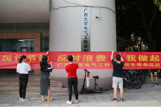 金秋九月,秋风送爽。9月15日下午,电气工程学院响应党中央的厉行节约的号召,于学院门前开展了“厉行节约,反对浪费,从我做起”的师生签名活动。
