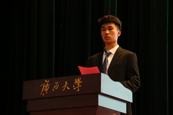 新生代表、20级硕博连读生范贤浩同学在发言中回顾了过去的几年在广西大学的学习生活,对老师表达了感谢。展望未来,他希望自己同大家一起为学校和国家的发展贡献力量。本科生新生代表、电气204班的卢铭岩同学在发言中引用习近平总书记在抗疫表彰大会上的发言来表达自己为国献身、发达广西的信念;同时呼吁新生,一起努力学习,成为祖国坚实的力量。
