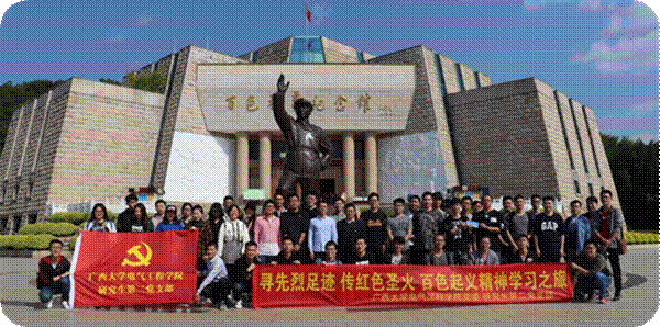 我院研究生第二党支部(简称研二支部)于 2018 年 11月 25 日组织支部党员及积极份子前往百色革命老区,举行以“寻先烈足迹 传红色圣火 百色起义精神学习之旅”为主题的参观学习活动。