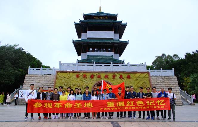 2018年11月17日,广西大学电气工程学院学生党支部本科生第二支部一行(共25人)赴红色根据地百色开展主题党日活动,近距离接受革命先辈事迹的生动党课教育。在此期间,支部先后参观了百色起义纪念园中的百色起义纪念馆、红军桥、百色廉政教育展厅、右江民族博物馆、百色起义纪念碑,以及工农红军第七军军部旧址——粤东会馆。