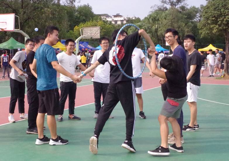 呼啦圈接力:呼啦圈穿过的是个人,凝聚的是集体。