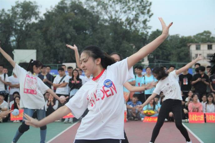 下午6点,比赛项目接近尾声,同学们期盼着最激动人心的闭幕式颁奖环节的到来。学院啦啦操队的劲歌热舞将现场气氛推向高潮。