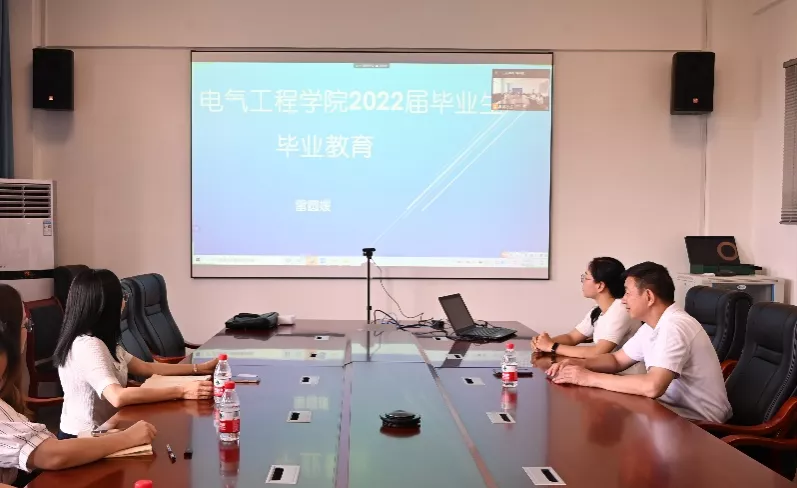 为做好毕业生工作,助力毕业生顺利毕业,5月30日,我院在315会议室以线上线下相结合的方式召开2022届毕业生教育大会。学院党委副书记雷圆媛、校武装部陈榕平老师、学院团委书记石建有、党委组织员黄丽梅和辅导员李娟出席会议,电气工程学院2022届全体毕业生参加大会。会议由学院团委副书记蒋冬连主持。