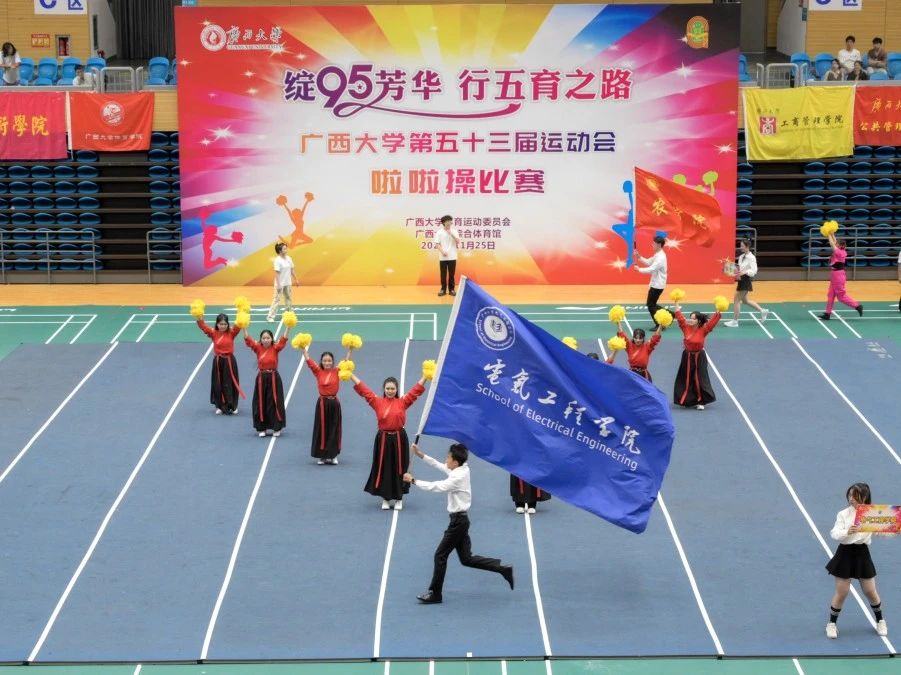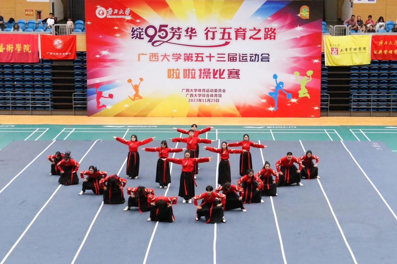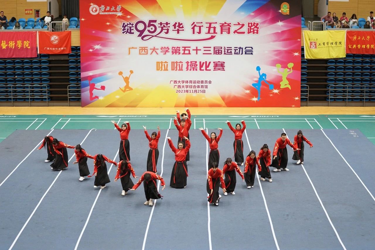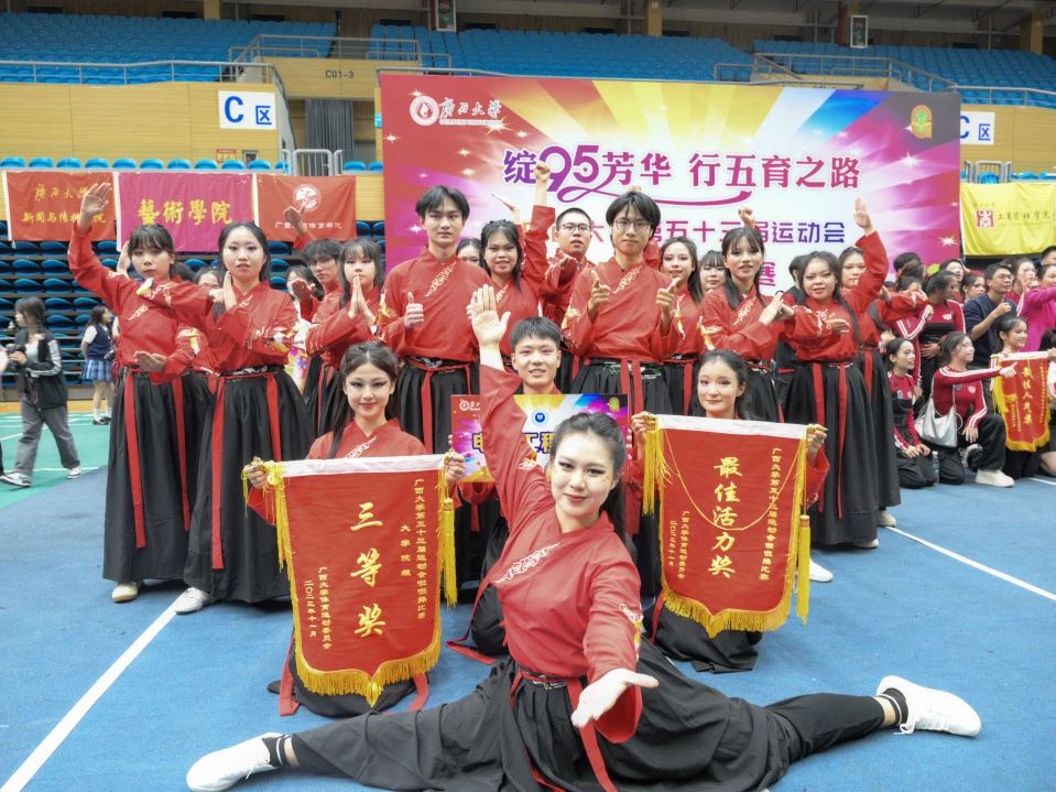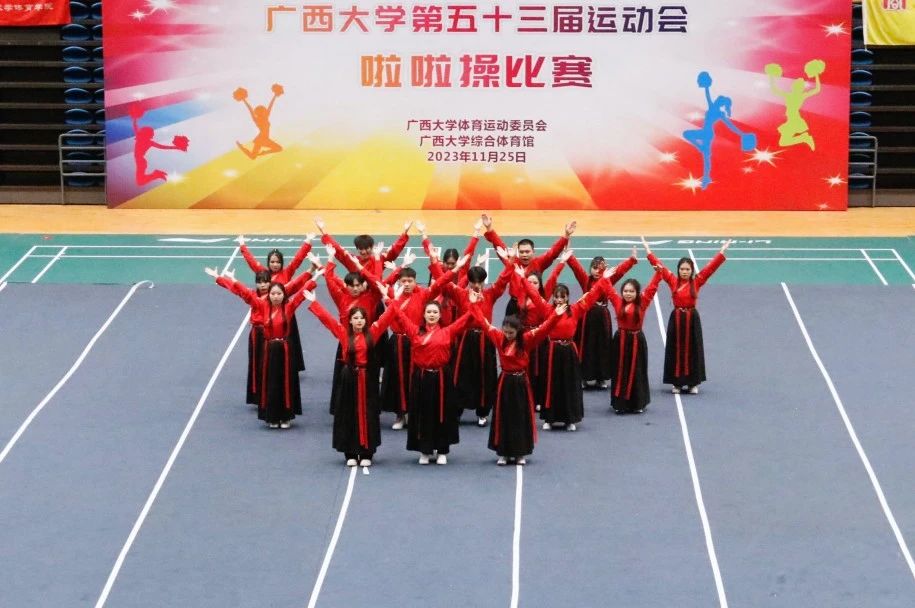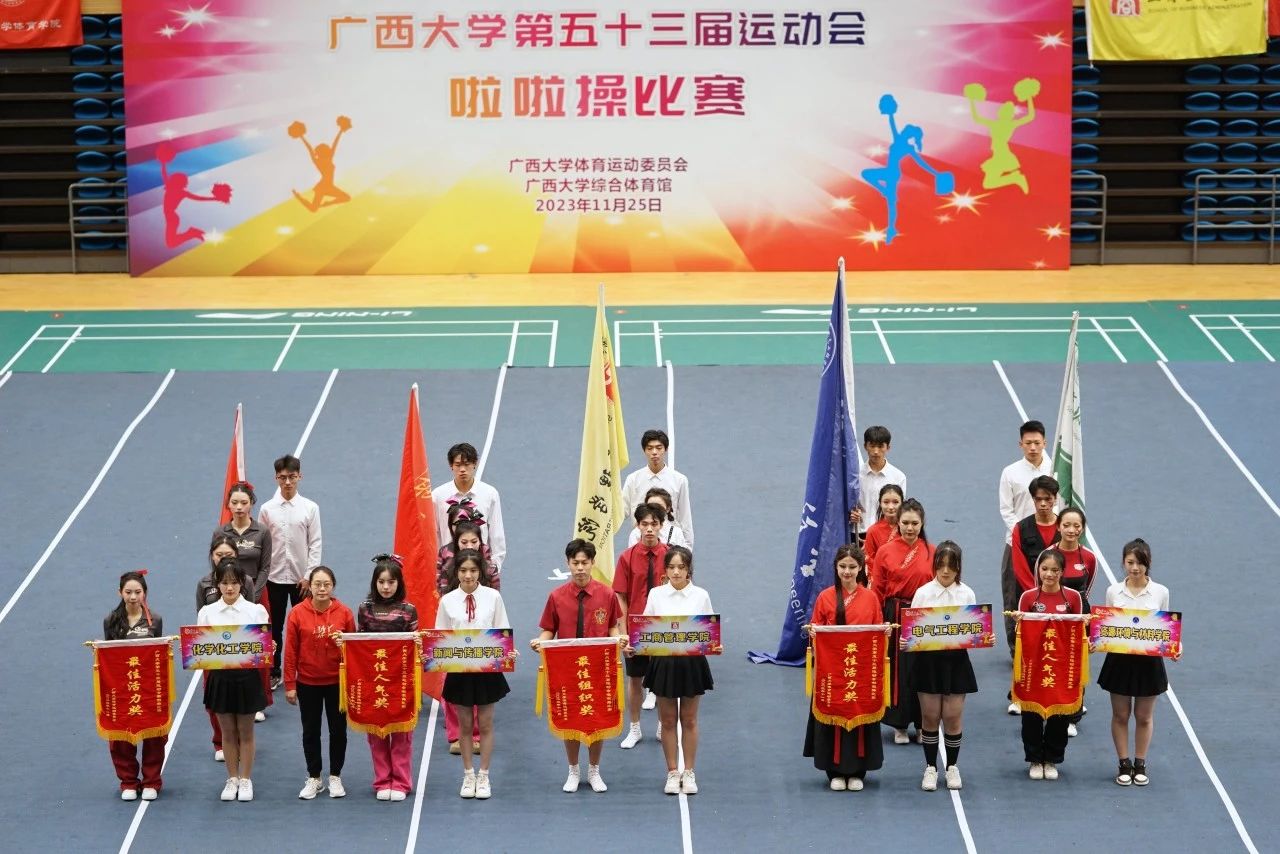 11月25日下午,广西大学第五十三届运动会啦啦操比赛在西校园体育馆举行。经过激烈的角逐,我院啦啦操队荣获大学院组三等奖和最佳活力奖,王梦瑜同学获得最佳运动员奖。