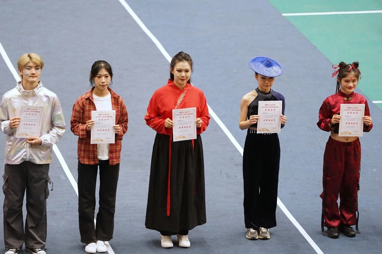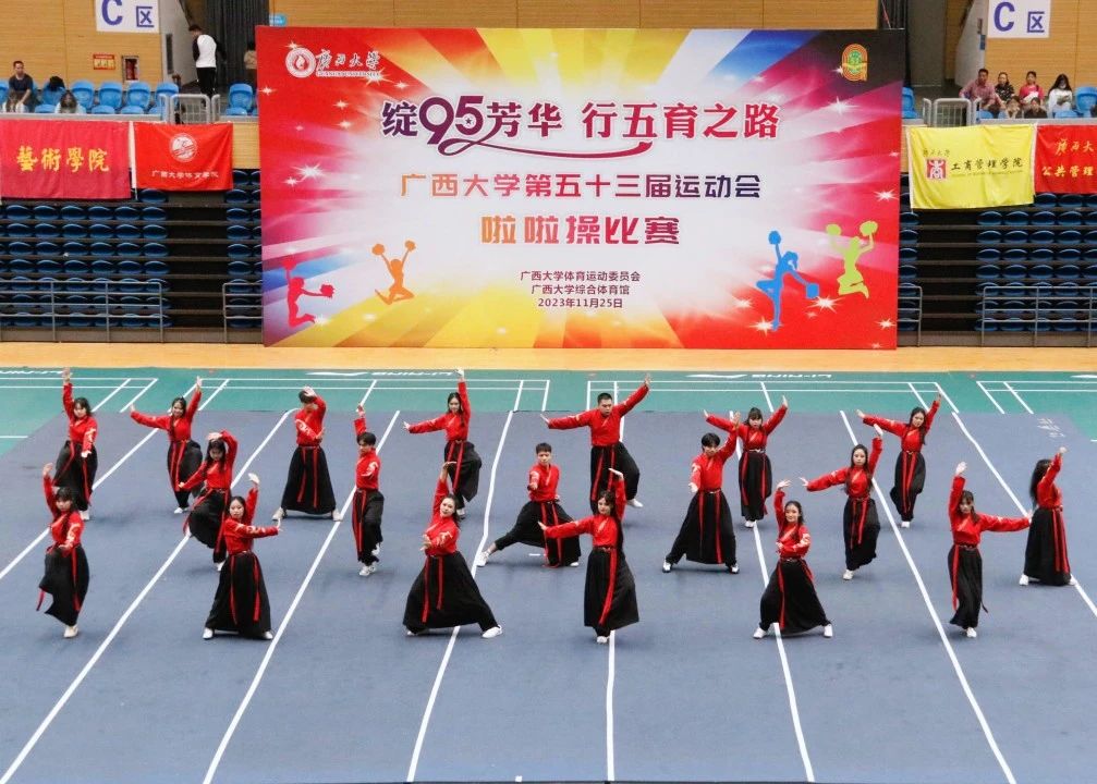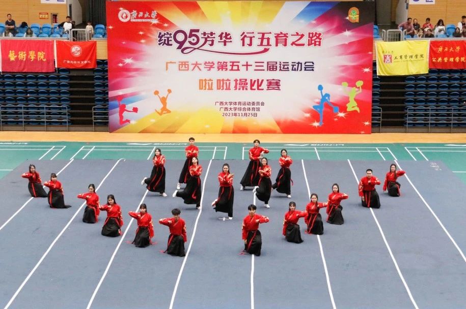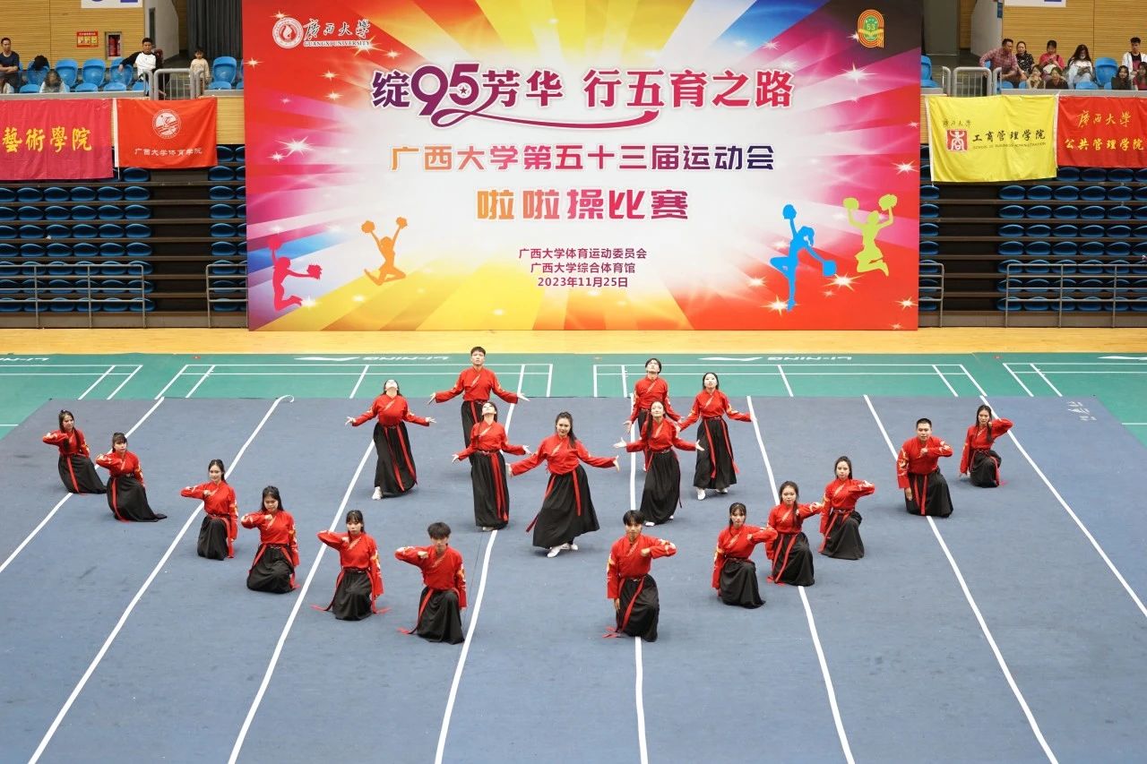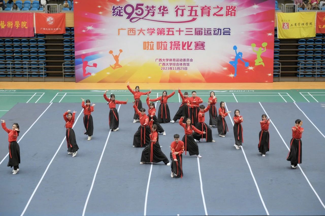 11月25日下午,广西大学第五十三届运动会啦啦操比赛在西校园体育馆举行。经过激烈的角逐,我院啦啦操队荣获大学院组三等奖和最佳活力奖,王梦瑜同学获得最佳运动员奖。