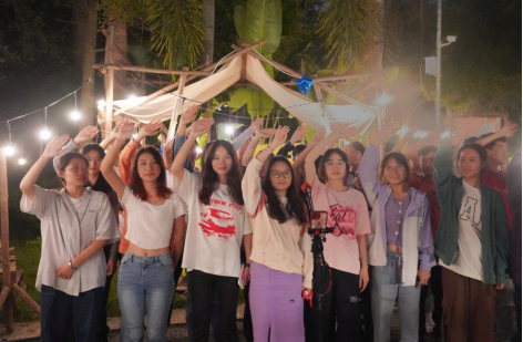 夜晚悄然而至,篝火晚会如期举行。在温暖火焰的包围中,同学们跟随教练进行一系列的团队游戏。在游戏过程中,同学们绽放青春活力,展现青春激情,加深彼此了解,培养团队精神,提升社会责任感。同学们纷纷表示,未来将以无限的激情和热爱投入到青春实践中去。