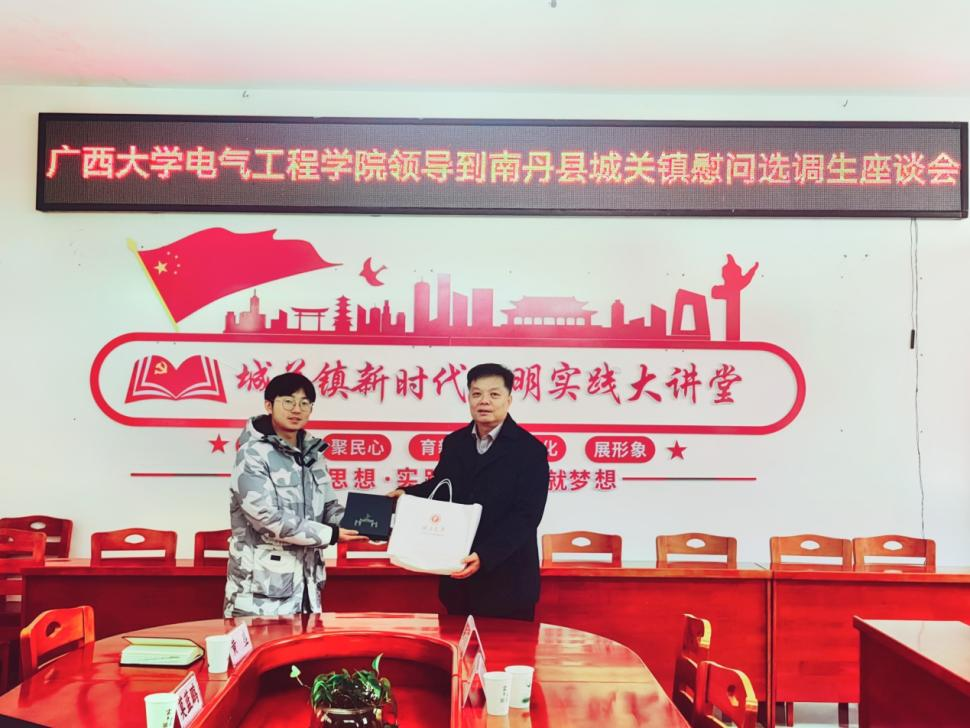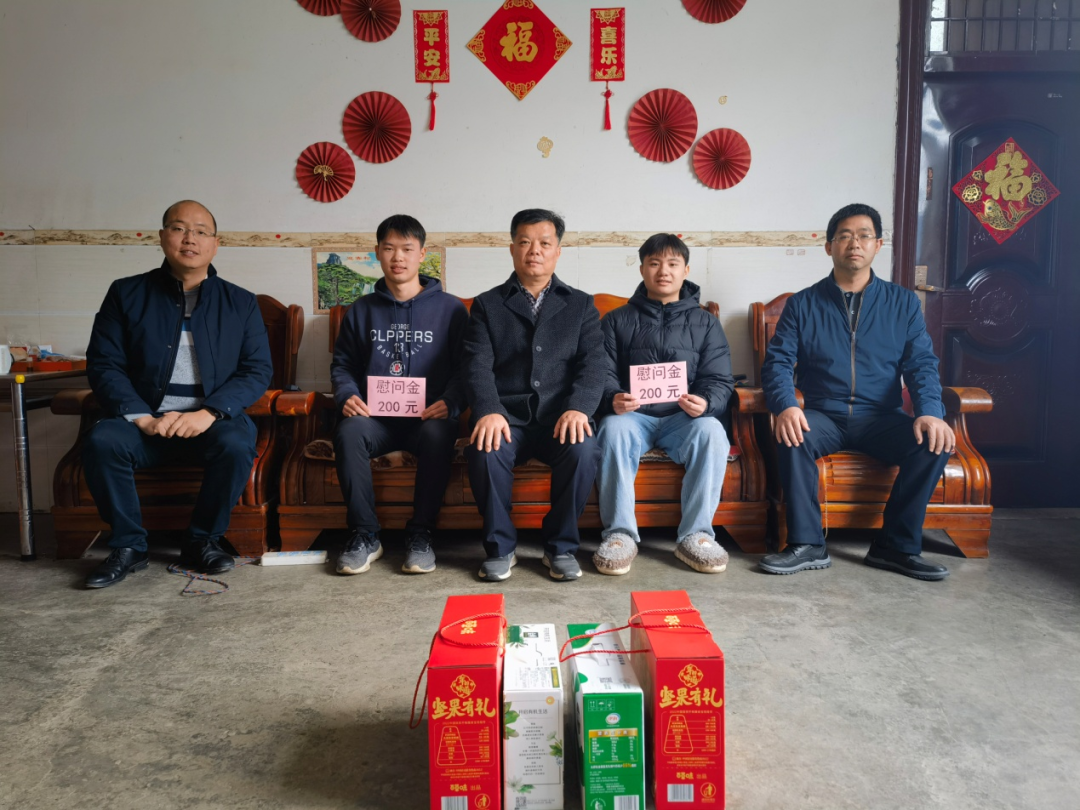 近日,学院党委开展春节前走访慰问活动,学院党委书记梁志坚一行到南丹县城关镇和东兰县东兰镇慰问学院2021届选调生校友和生活困难在校学生,向他们传递学院党委的温暖与关怀,激励他们克服困难,勇毅前进。 1月30日下午,学院党委书记梁志坚一行与南丹县城关镇领导在城关镇举行了座谈会,了解我院2021届定向选调生王自力在城关镇的工作情况。座谈会由镇党委副书记韦启春主持,会上城关镇领导莫蓝鹏、田维雄、黄盛分别介绍了王自力校友的工作表现,对他的工作成绩予以肯定;王自力校友向学院领导老师汇报了两年多来的工作经历,并介绍了他目前负责的镇乡村振兴办公室的业务。王自力表示,感谢母校的培养和组织的信任,让他有机会在基层工作,为南丹县乡村振兴事业贡献自己的青春力量。 慰问定向选调生座谈会 交流会上梁志坚书记鼓励王自力要戒骄戒躁,继续发扬成绩、深耕一线、努力工作,以优秀的成绩回报组织的培养和信任。座谈会后,梁志坚书记代表学院向王自力校友赠送了慰问品并一起合影留念。 梁志坚书记向王自力校友赠送慰问品 学院领导一行与城关镇领导及定向选调生王自力合影 1月31日下午,学院党委书记梁志坚一行继续到广西革命老区广西东兰县的东兰镇同拉村拉甫屯对2021级韦荣科和2020级韩忠旺同学进行家访及慰问,为他们送去了慰问金和慰问品,并致以节日祝福。在韦荣科家中,梁志坚书记与其他学院领导老师与韦荣科、韩忠旺进行亲切交谈,询问他们的学习、生活情况以及面临的困难,鼓励他们要保持积极向上的心态,勇敢面对困难,努力学习,争取更好的成绩。 两位同学感谢学院的关心关爱,表示将发扬好“三拼精神”,继续努力学习,回报学院的培养和领导老师的期待。 学院领导慰问东兰县生活困难学生 学院党委副书记李道洋,副院长李畸勇,团委副书记蒋冬连参与本次走访和慰问活动。