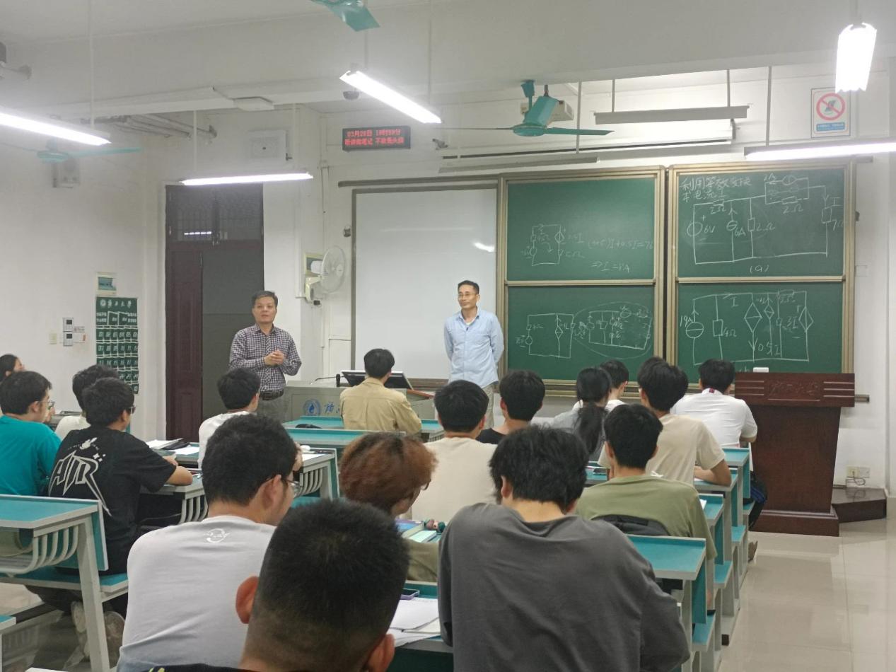 晚上7:30,梁志坚书记巡视了我院所有晚自习教室,了解同学们晚自习学习内容、纪律情况。梁书记在查看各班级晚自习情况时,同学们正在练习《电路原理》课程的“每日一题”习题,“每日一题”活动正是“2-2-N 强基蓄能”专项学业帮扶活动的一项内容。梁书记在课堂上还与参与活动的电工与实验党支部教师、学生党员、学生班主任助理进行交流,了解此项帮扶活动的方式和效果。