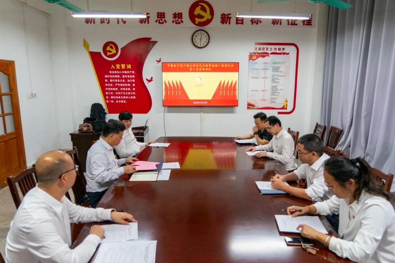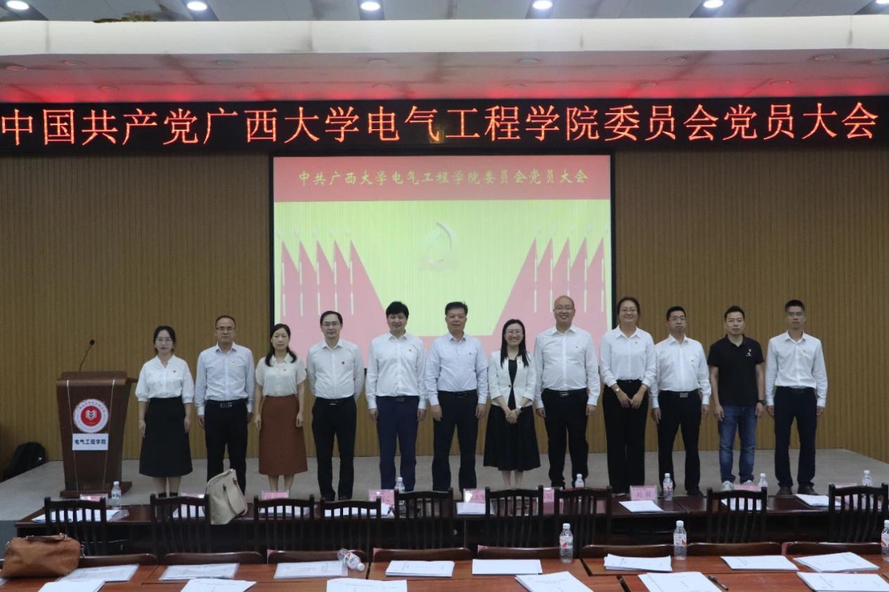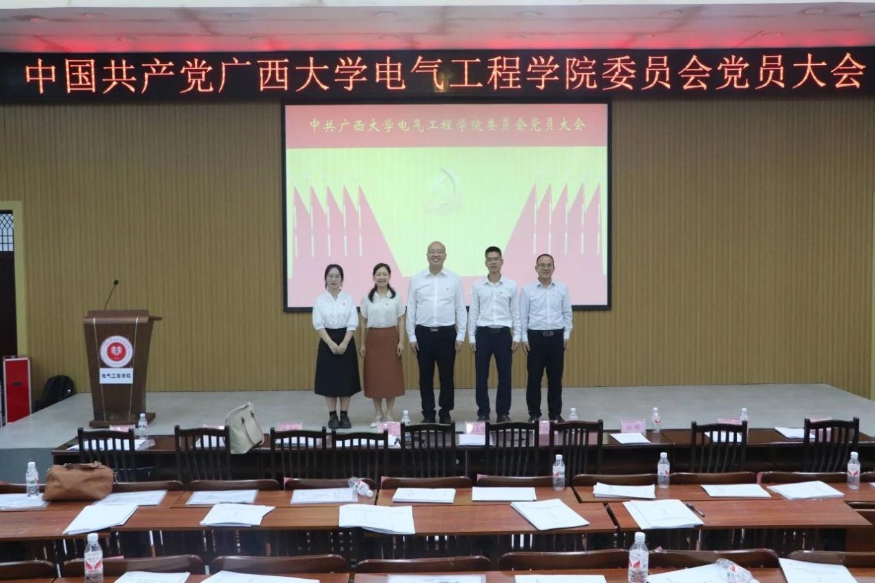 4月23日,中国共产党广西大学电气工程学院委员会党员大会在农学院124报告厅顺利召开。学院党委书记梁志坚同志代表中国共产党广西大学电气工程学院委员会做《凝智聚力 团结奋斗 再创学院“双一流”建设高质量发展新局面》的报告。校党委组织部副部长雷圆媛同志,组织部魏书颂同志莅临大会指导,学院师生正式党员参加会议,学院武新章院长及民主党派教师代表、部分预备党员列席会议。会议由学院党委副书记、纪委书记李道洋主持。 合唱国歌 本次大会主题是深入学习贯彻习近平新时代中国特色社会主义思想和党的二十大精神,全面落实教育强国战略,大力弘扬创新创造、奋勇争先、全面一流的广西大学“双一流”精神,推动学院内涵式发展,为再创学院“双一流”建设高质量发展新局面而团结奋斗。报告充分肯定了学院党委过去五年取得的五大方面成绩:一是强化政治引领,加强党的全面领导;二是不懈攻坚克难,扎实推进学院各项事业高质量发展;三是加强党管人才,师资队伍建设增量提质;四是持续强基固本,人才培养取得新成效;五是坚持以人为本,学院各项管理服务工作务实暖心。报告对未来五年学院工作进行了展望。报告强调,学院的各项工作要以学校综合改革和“双一流”建设中心工作为基础,贯彻落实广西大学第十次党代会精神,以争创“全面一流”为目标,以教学工作为主体,以学科建设为龙头,以师资队伍建设为核心,提升科研创新能力、优化队伍结构、加强平台建设、推进国际化进程,提高办学水平,努力推进电气工程学院一流学科建设,打造特色鲜明的研究型学院,全面落实立德树人根本任务、培养高质量的社会主义建设者和接班人。报告号召,全院师生以迎接广西大学百年校庆和九十年院庆为契机,建设牢牢扎根八桂大地的电气人才基地和学术高地,在校党委的正确领导下,在学院全体师生努力下,早日实现一流研究型学院的建设目标,共同谱写建设新时代中国特色社会主义壮美广西的西大电气篇章。 梁志坚书记代表学院党委作工作报告 大会现场 大会应到443人,实到375人。采用无记名投票方式和差额选举办法,选举产生了中国共产党广西大学电气工程学院新一届委员会和新一届纪律检查委员会。梁志坚、刘辉、李道洋、于婷、李畸勇、石建有6位同志当选新一届党委委员,李道洋、陈碧云、杨武、李深旺、李娟5位同志当选新一届纪委委员。 新一届党委委员合影 新一届纪委委员合影 新一届党委委员、纪委委员与校党委组织部副部长雷圆媛同志(右六)合影 庄严雄壮的《国际歌》响起,大会圆满完成各项议程,中国共产党广西大学电气工程学院委员会党员大会胜利闭幕。 会后,中国共产党广西大学电气工程学院新一届纪律检查委员会召开第一次全体会议,选举李道洋同志为纪委书记。 新一届纪律检查委员会全体会议 随后,中国共产党广西大学电气工程学院新一届委员会召开第一次全体会议,选举梁志坚同志为党委书记,刘辉同志、李道洋同志为党委副书记,并通过中国共产党广西大学电气工程学院纪律检查委员会第一次全体会议选举结果。 新一届党委委员会全体会议