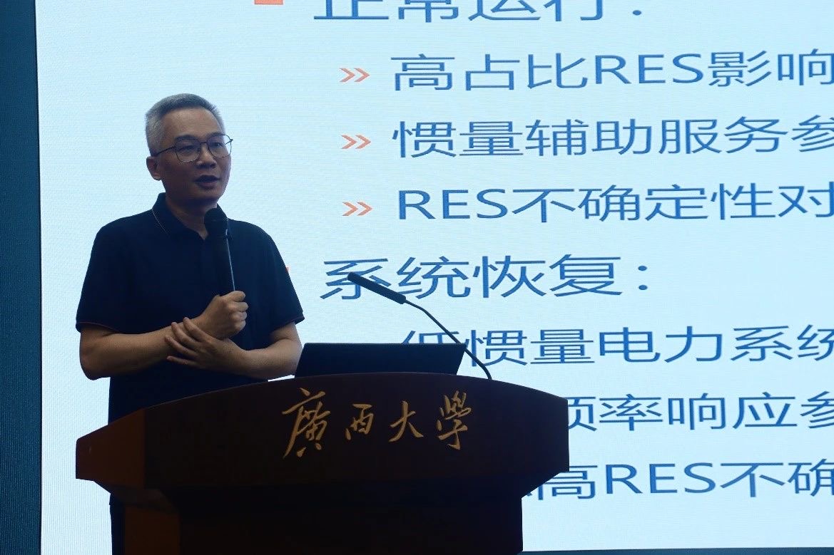 为鼓励创新,营造追求卓越的学术文化氛围,深化学科间的交流与合作,推动学术创新和科研成果的转化,落实广西大学第二届学术文化节各学科群“一赛一坛,一展一会”的活动方案,6月16日,轻化工程与先进制造学科群在君武楼玉林厅共同组织开展“交叉融合,追求卓越”专家学者系列学术报告会。 此次报告会由广西大学研究生院、校团委、学生工作部(处)主办,轻化工程与先进制造学科群承办,邀请了轻工与食品工程学院王成华教授、化学化工学院赵钟兴教授、机械工程学院黄豪中教授、电气工程学院覃智君副教授对本学科或学科交叉领域具有前沿性的学术研究进行交流分享,我院研究生参与活动。 图1 活动现场 图2 各学院教授进行交叉学科交流 我院覃智君副教授进行题为基于鲁棒优化的低惯量电力系统优化运行的学术报告。覃智君老师首先解释低惯量电力系统的定义,带领大家深入理解这一系统的定义及其所面临的挑战,其次详细地阐释在可再生能源大规模并网的背景下,系统惯量的减少导致的频率波动问题,最后强调为维持电力系统稳定,必须开发新的辅助服务手段。 图3 电气工程学院覃智君副教授作学术报告 覃智君老师着重介绍鲁棒优化技术在电力系统运行中的应用,还展示了他独创的分布鲁棒机会约束建模方法,以及他所开发的双层策略竞价优化模型。这些方法和模型的创新性在于它们能够在不确定性和变化多端的市场环境中,提供更为稳健的决策支持,从而增强电力系统的经济性和可靠性。 图4 参会人员合影留念 最后,电气工程学院、轻工与食品工程学院、化学化工学院和机械工程学院的专家们与参会师生进行合影留念,本次专家学者学术报告会圆满结束。