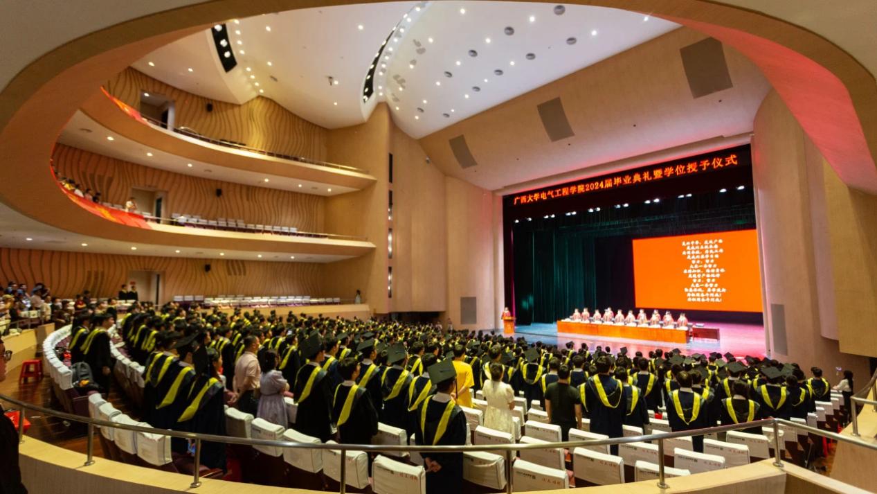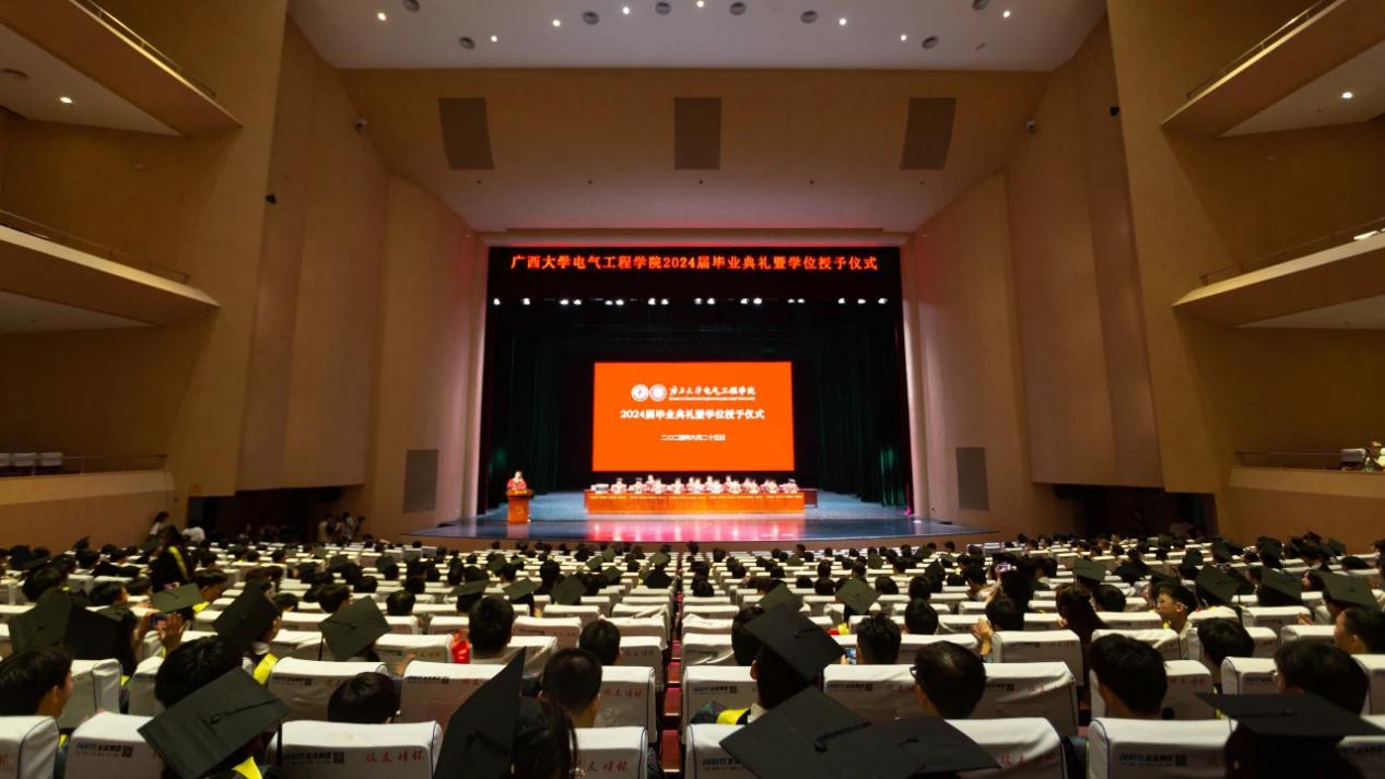 凤凰花开,骊歌渐起。6月25日上午,广西大学电气工程学院在汇学堂举行2024届毕业生毕业典礼暨学位授予仪式。学院党委书记梁志坚,院长武新章,院党委副书记、副院长刘辉,校党委组织部副部长雷圆媛,院党委副书记李道洋,校研究生院副院长黎静华,校教务处教师教学发展中心副主任胡立坤,校发展规划处副处长张镱议,学院副院长于婷、副院长李畸勇,学院院长助理、君武学者吴晖锽,研究生导师代表、毕业班班主任、教师代表和全体辅导员等出席毕业典礼暨学位授予仪式,李道洋副书记主持活动。