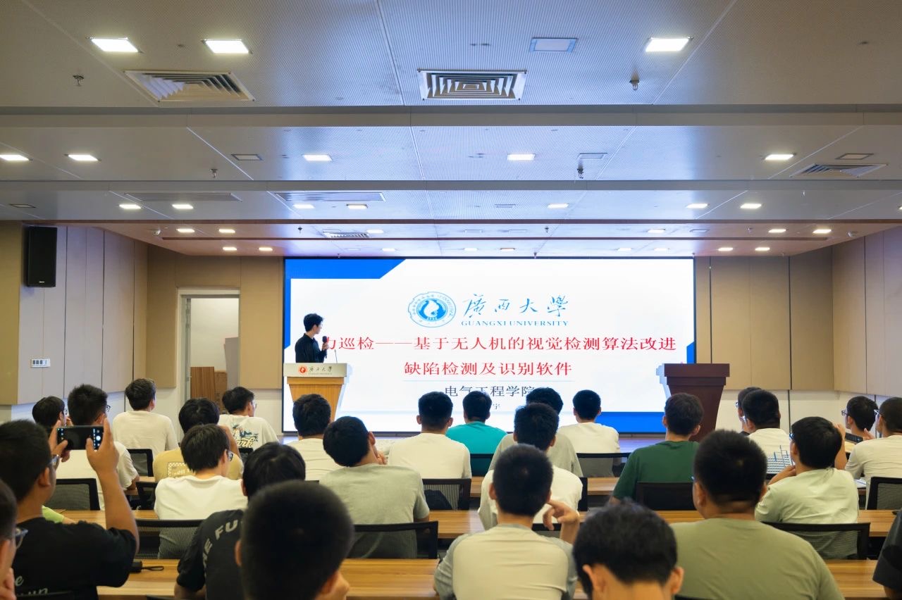 来自电自创培221班的过轩宇同学分享了自己在无人机电力巡检领域的研究。该研究致力于无人机巡检的创新,通过结合在线与离线检测方式,并自主设计无人机硬件及搭载边缘AI设备,实现了高效的图像数据采集与处理。他表示,基于YOLOV5n的目标检测算法经过改进,在电力巡检环境中表现出色。