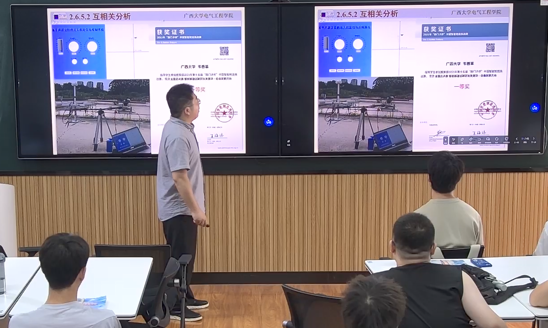 在学习完相关分析法的基本原理和应用案例之后,韦老师引出了“理论公式如何进行实际应用?如何用计算机编程来实现互相关计算”的问题,并以往届学长们在大创项目、学科竞赛中取得的优秀成果为例,使同学们深刻体会到理论与实践相结合的重要性,激发了练就理论联系实际真功夫的信念,并引导同学们在课后利用竞赛、大创、课程设计、仿真和实验来锻炼和强化实践动手能力。