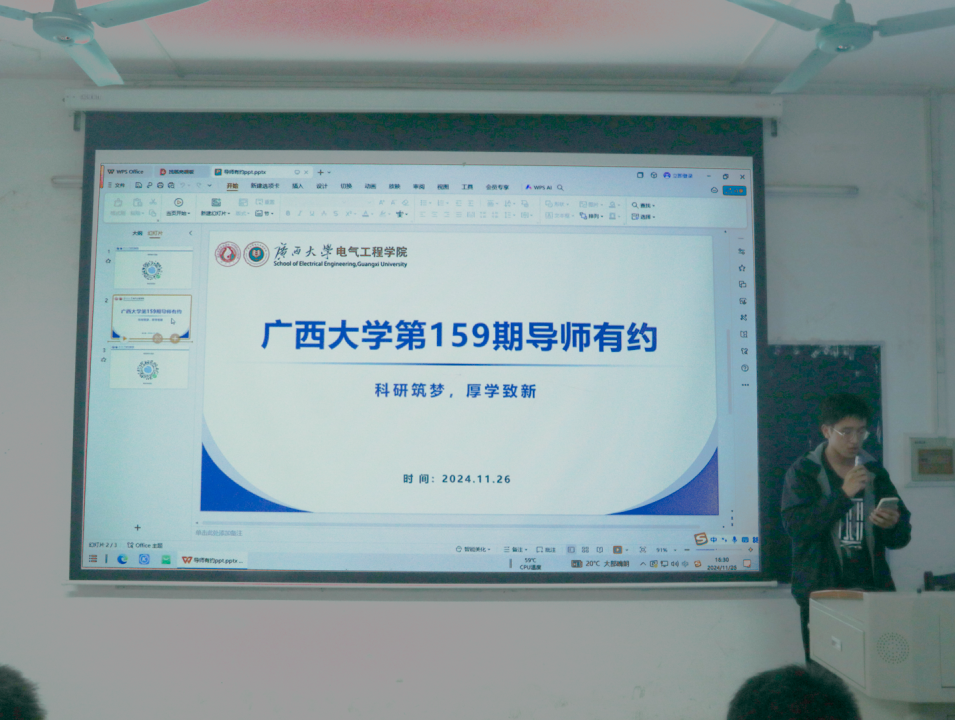 11月26日,由广西大学研究生会和广西大学电气工程学院研究生会共同举办的第159期“导师有约”系列活动在电气工程学院304教室举行。本次“导师有约"学术讲座的主题是“科研筑梦,厚学致新”,由电气工程学院贾鹏飞老师和李高翔老师主讲,150余名研究生参加讲座。 01 贾鹏飞老师分享经验 贾鹏飞老师的分享主题是“浅谈科研创新点的来源”,他以理论研究的深入挖掘、实际工程需求的启发、技术交叉融合的创新、实验与数据的新发现以及对已有成果的改进五个方面作为突破口,生动形象地讲解了开拓寻找科研创新点的思路。贾老师回忆了自己在研究生时期的见闻和经历,鼓励同学们去创新。同时,贾老师分享了无人机机房、机器嗅觉和智能水表等学科交叉新兴技术,并结合自己的研究方向,推荐同学们从学科交叉入手寻找创新点。最后,贾鹏飞老师表示:我们要正确认识期刊论文、学位论文的创新性要求,要对自己的研究有信心,同时参考学习他人的优秀成果。 02 李高翔老师分享经验 李高翔老师的分享主题是“新能源并网系统的次同步振荡抑制技术”。首先,他详细介绍了电力系统中的电能转换、输送以及新能源发电比例提高后电网面临的稳定性问题,包括风力发电的波动性和电网惯性减小等,同时介绍了两种典型的振荡机理分析方法:阻抗法和特征值分析法,以及两者的优缺点和实际应用。接着,李高翔老师介绍了他的研究成果“虚拟同步机串补并网次、超同步振荡分析及抑制”、“一种增强电网强度的次、超同步振荡抑制方法”并结合他刚开始做电力电子时候的经历,分享了他如何找创新点的心得体会,他表示创新没有想象中那么难,要立足于基础知识,开拓自己的思路。最后,李高翔老师鼓励同学们在硕士期间勤奋学习,多花时间在科研上,提高自己未来的竞争力。 03 活动回顾 在交流互动环节中,同学们踊跃参与,积极向两位老师提出自己的疑问。贾老师和李老师对同学们提出的“如何培养在阅读文献时的批判性思维”、“科研遇到难题时如何调整心态”、“如何寻找高质量文献”、“硕士生涯与未来工作的联系”等问题作出了耐心解答,同学们感到获益匪浅。 此次“导师有约”系列活动搭建了研究与导师深入交流的平台,主讲老师从自身经历出发与同学们分享了宝贵经验与前沿知识,激发了同学们的创新思维,拓宽了学术视野。期望广大研究生们以此为契机,深耕科研,勇于创新,为行业发展和科技进步贡献力量。