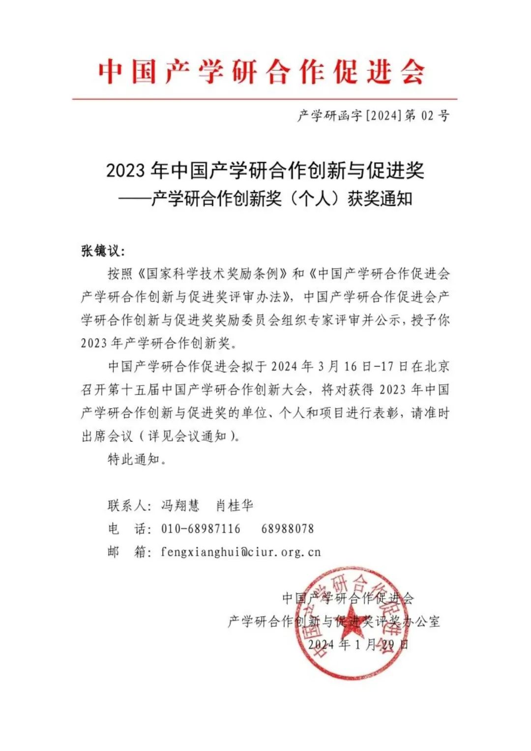 我院张镱议教授荣获2023年中国产学研合作创新奖(个人),同时荣获第十七届广西青年科技奖。