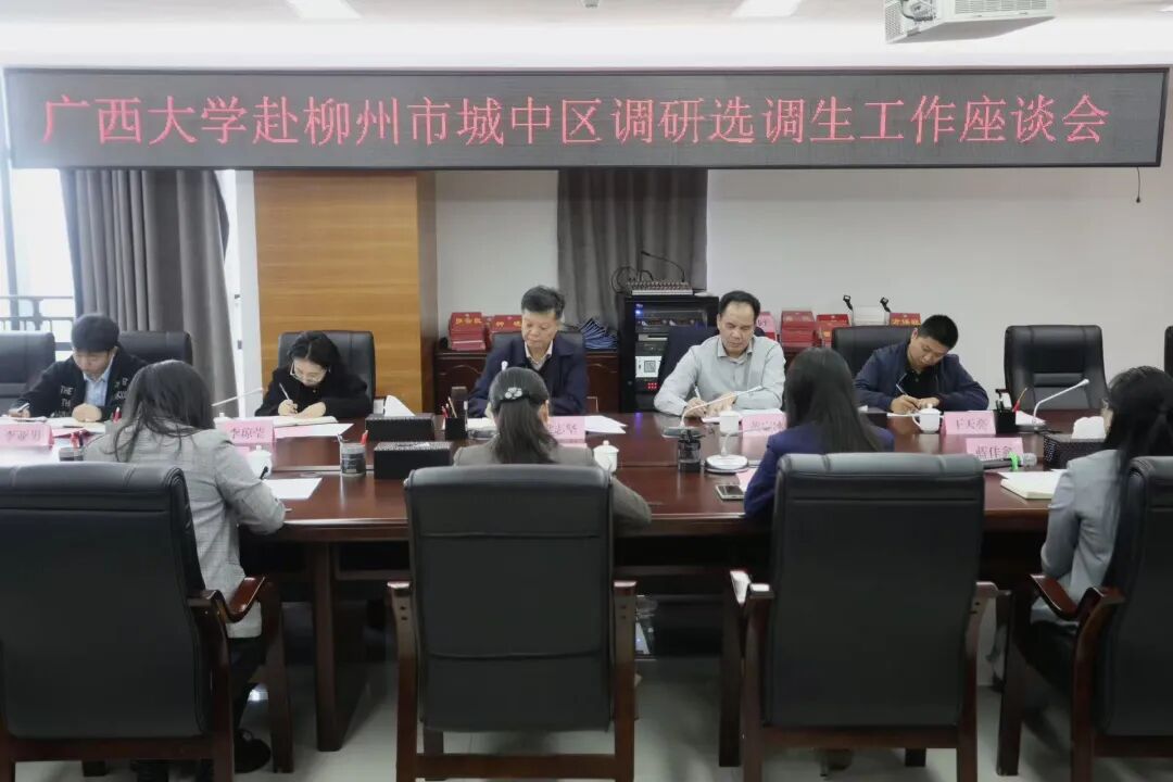 为贯彻落实学校党委关于选调生工作的决策部署,受学校党委委派,11月5日,我院党委书记梁志坚带队前往柳州市城中区走访调研选调生工作。柳州市城中区常委、组织部部长覃卢露及有关负责同志参加座谈交流。