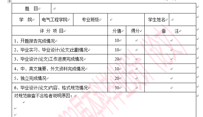 2、请同学按规范审查的要求自查,指导老师合理评分。