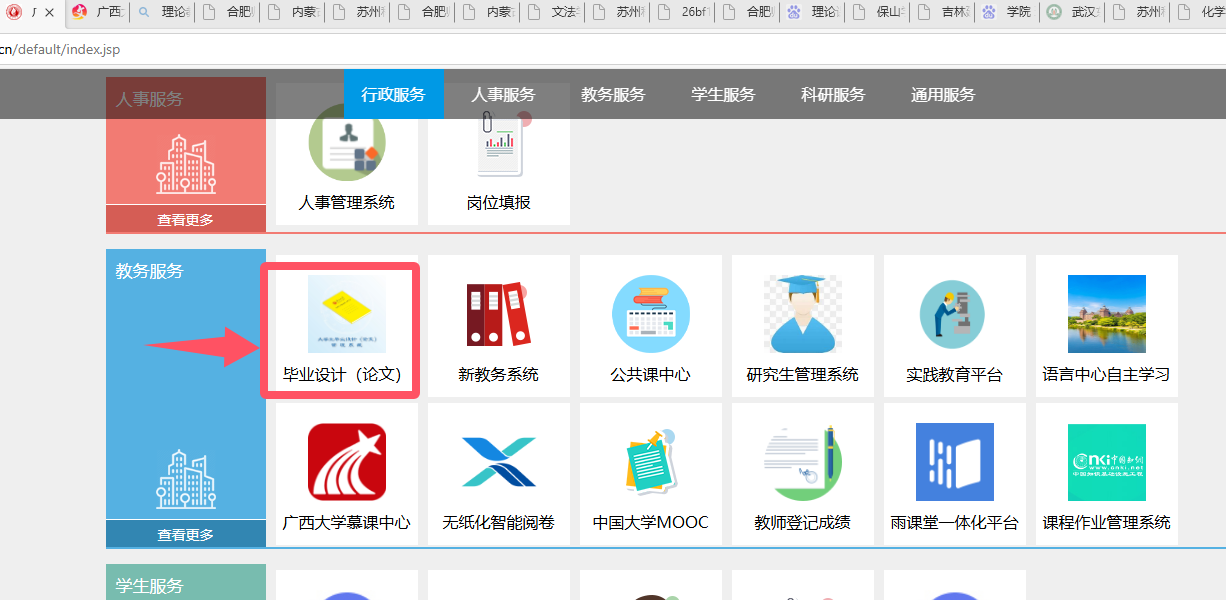 学校网站主页→公共服务→办事大厅→服务分类选“教务服务”→毕业设计