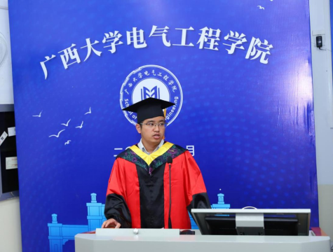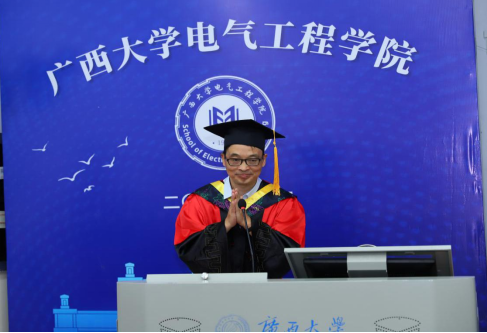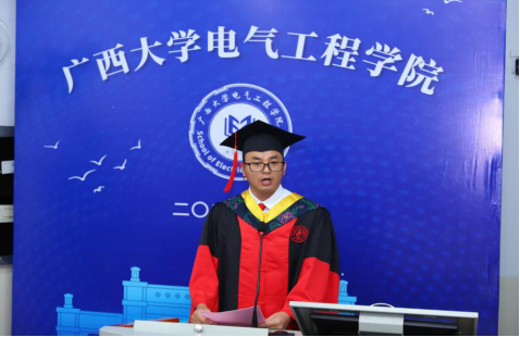 毕业研究生代表黄乾博士在毕业感言中,回顾了从本科、硕士再到博士在电气工程学院的青春年华,表达了对学院老师们辛勤培育的由衷感恩之情,并表示在新的征程里,将以满腔的热情,去服务社会、实现自我。
