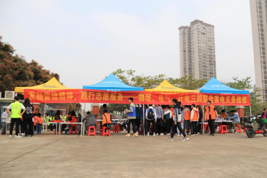 三月的春风暖暖吹过,我们又迎来了学雷锋热潮。为进一步传承和弘扬雷锋精神,践行社会主义核心价值观,传递正能量,在纪念毛泽东主席题词“向雷锋同志学习”58周年之际,广西大学电气工程学院与物理科学与工程技术学院、计算机与电子信息学院于3月13日在东高居民楼晒谷场开展了家电义务维修活动。