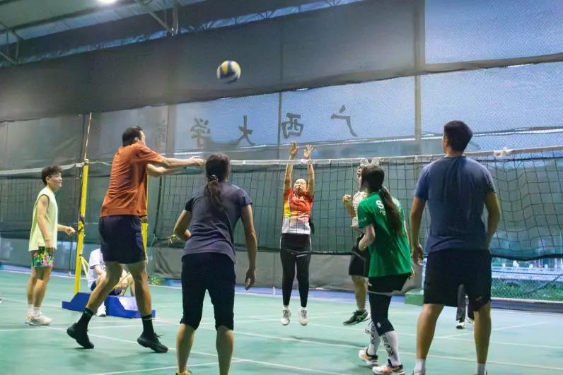 为备战广西大学研究生“君武杯”气排球比赛,在比赛中取得好成绩,10月20日晚,我院气排球队与体育学院气排球队在东校园离退休教职工运动馆内举行气排球训练赛。