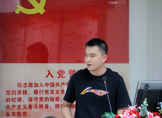 首先,由上半年新进积极分子武子睿等八位同志与大家分享了红色诗词、电影、著作和系列讲话等内容。同志们从“愿请长缨,不负青春为家国”中领悟到了共产党的初心和使命,从“六十万对八十万,是碗夹生饭也要把它吃下去”中感受到了领导人的胆识与魄力,从“七年知青岁月”中激起了民族复兴的青春热血。