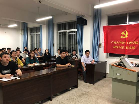 为贯彻落实习近平总书记在党史学习教育动员大会上的重要讲话和全国两会的重要指示精神,2021年3月29日晚,广西大学电气工程学院研究生第二党支部在电气楼201开展了一次主题为图说“党史”,聚焦“两会”的党日活动,学习百年党史,汲取奋进力量。研二支部书记徐俊华、支部委员叶永健、陈钊、李秀、刘经纬等全体党员参加活动。