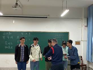 会议的第三项为2020级新生党员的见面会,5名新生党员依次上台自我介绍,并与其他党员同志进行交流。