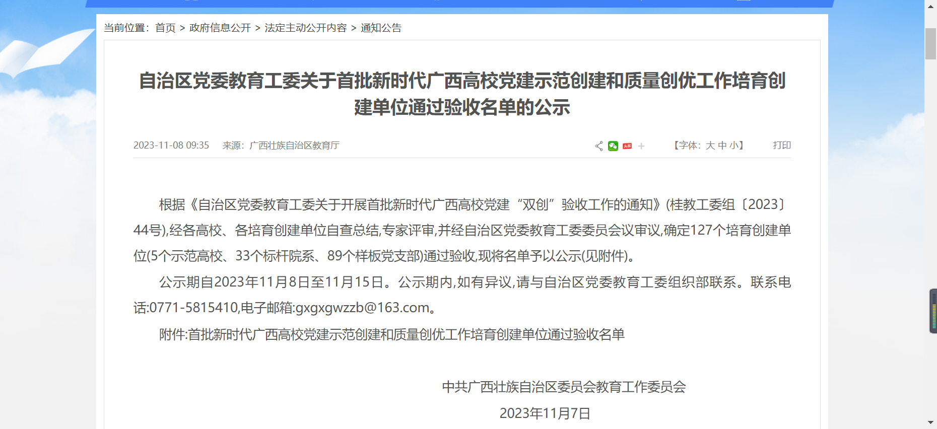 图1 自治区党委教育工委公示信息