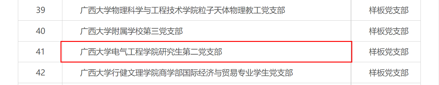 近日,自治区党委教育工委下发《关于公布首批新时代广西高校党建示范创建和质量创优工作培育创建单位验收通过名单的通知》(桂教工委组〔2023〕61号),经过专家组进校实地考察和现场答辩等环节,广西大学电气工程学院研究生第二党支部(以下简称“电气研二支部”)以优秀的表现顺利通过样板支部验收。